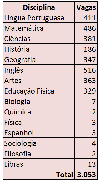 Segue abaixo a tabela com as vagas: